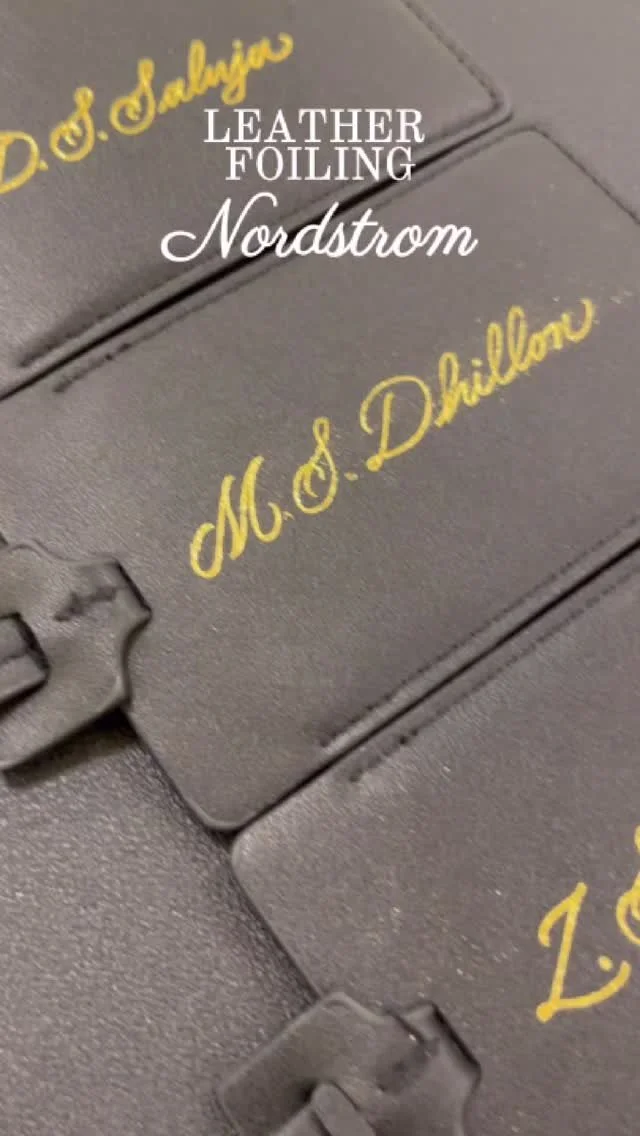Our foiling artists can quickly render names, initials, or even artwork onto leather or suede footwear, purses, belts, or accessories. This technique even works on paper ,such as gift cards.