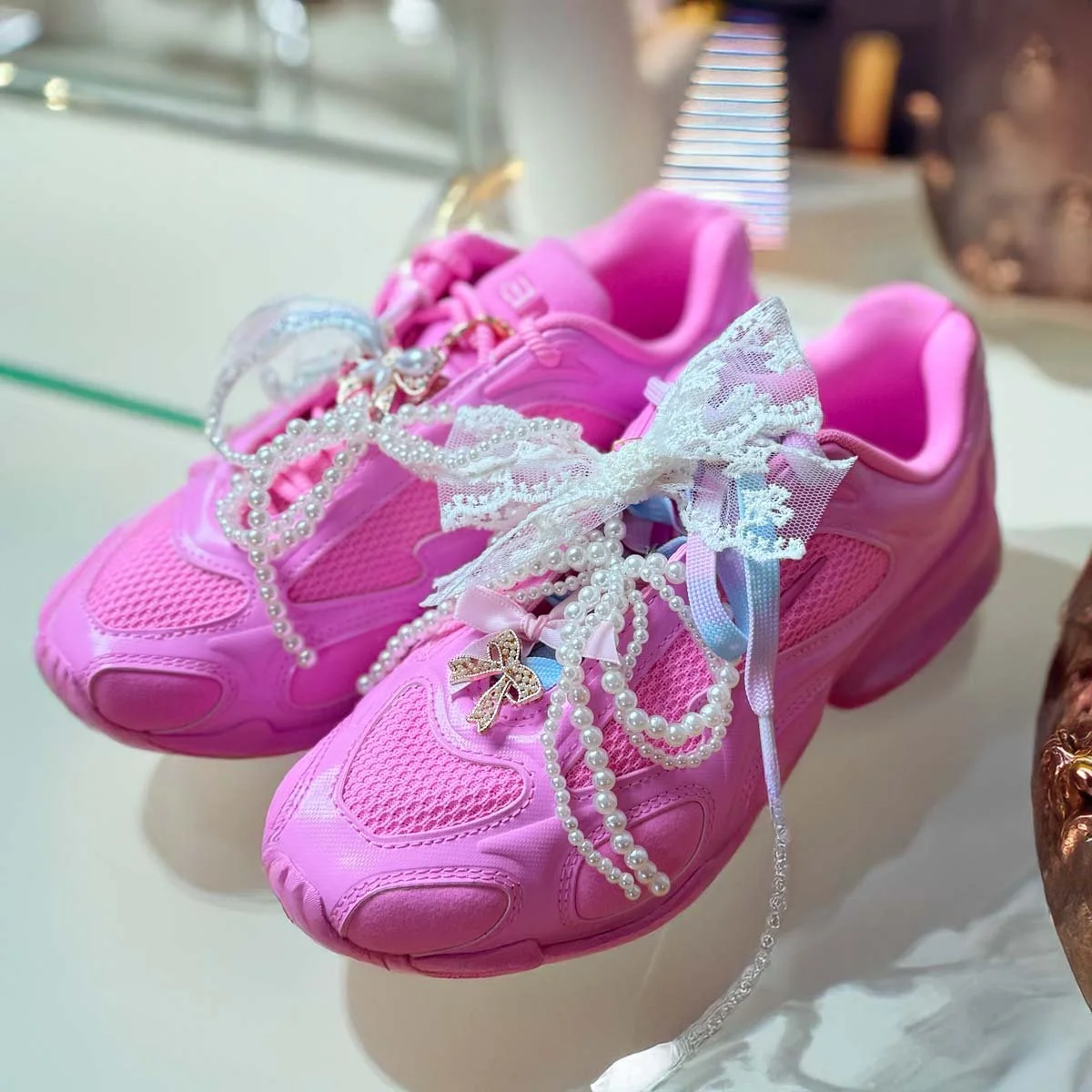 Sneaker lace and charm customization is one of the biggest trends in fashion right now, with satin ribbons, pearls, bows, and charms transforming everyday sneakers into something expressive and personal.